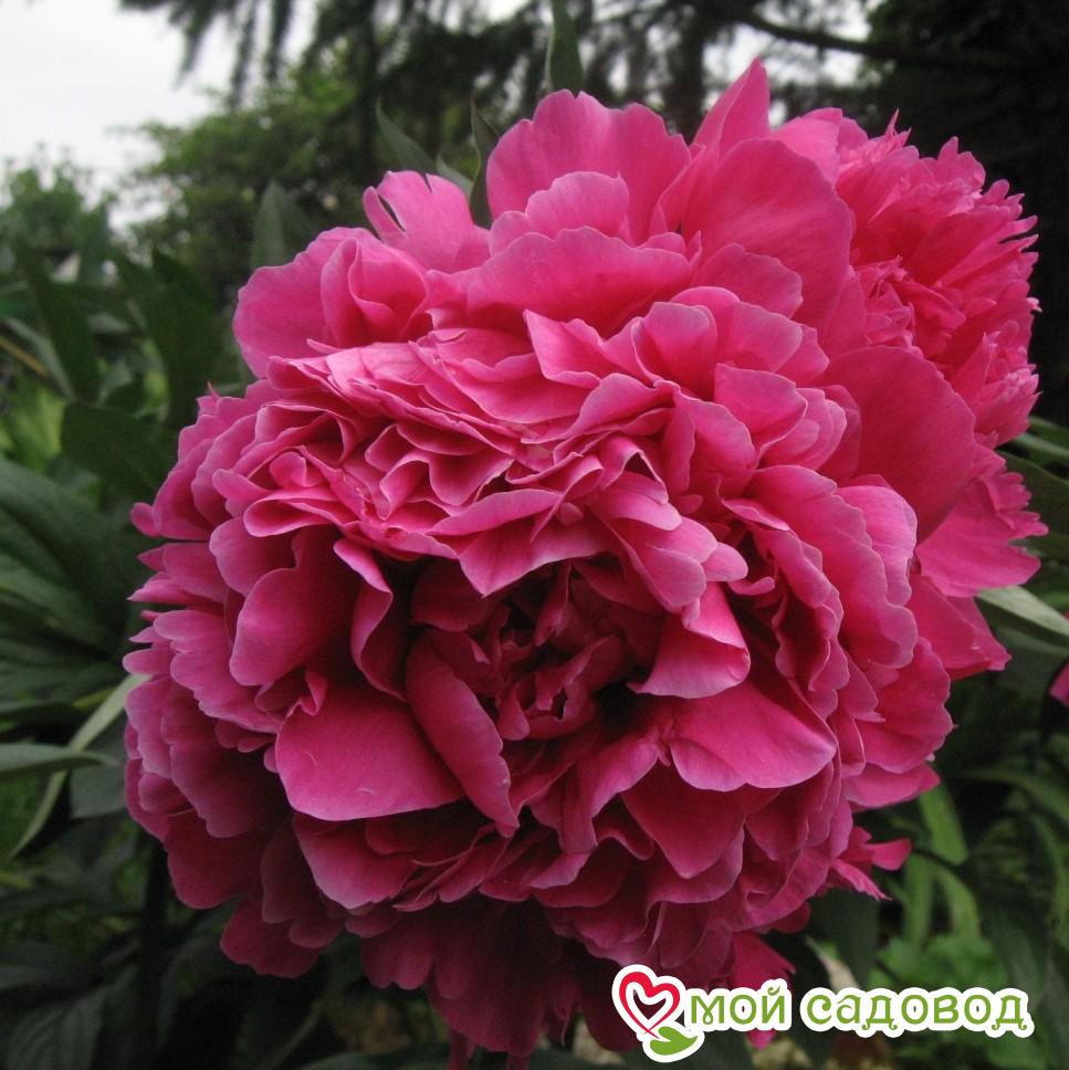 Махровый. Цветок диаметром 20 см, прекрасной бокаловидной формы, ярко-красный с сиреневым отливом. Лепестки крупные, округлые. За наружными лепестками видны ярко-жёлтые тычинки. Форма и окраска варьируют по годам. Куст компактный. Высота 90-100 см. Стебли толстые прочные. Листья крупные тёмно-зелёные. Цветение обильное. Жизнестойкий, очень мощный сорт, великолепное украшение сада, надёжная срезка. Среднего срока цветения. В 1957 г. сорт награждён золотой медалью американского общества пиона. Место посадки Для посадки пионов понадобится защищенное от ветров место с хорошей освещенностью. Сорта светлой окраски, а также пионы с простыми и полумахровыми цветками можно посадить на частично затеняемом участке, это продлит цветение и защитит цветы от выгорания. Почва для посадки Залог успешного цветения пиона в будущем — это подготовка почвы! 1. Подготовка ямы — 70*70 см на скудных песчанистых и торфянистых почвах — 50*50 см на плодородных, окультуренных почвах. ХРАНЕНИЕ ДО ПОСАДКИ: После получения посылки, рекомендуем вскрыть пакет и осмотреть корневище. Почки должны быть плотные и розового цвета. Так же уделите внимание самому корневищу, все сомнительные, потемневшие, сморщенные части удалите, а места среза обработайте зеленкой или залой. Если почки еще не тронулись в рост, а высаживать в открытый почву рано, советуем Вам хранить корневище в холодильнике, обязательно оставляя его в пакете с торфяной смесью или в коробке под снегом. Если почки успели раскрыться это не критично, сохранить до посадки их так же возможно, высадите корень пиона в большой просторный горшок или в любую другую ёмкость.